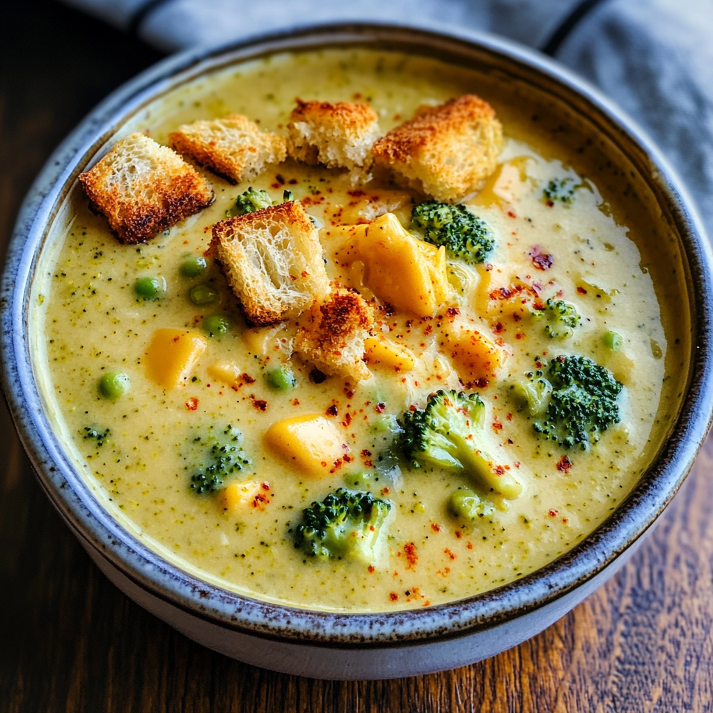 Creamy Broccoli Cheddar Soup is the ultimate comfort food that warms both body and soul. This rich and velvety soup combines fresh, vibrant broccoli with sharp cheddar cheese, creating a delightful dish perfect for cozy lunches or dinners. The creamy texture and savory flavors make it an ideal choice for chilly days or whenever you need a pick-me-up. Not only is it simple to prepare, but it also offers the flexibility to customize with additional proteins like chicken or spices to suit your taste. Whether enjoyed on its own or paired with crusty bread, this Broccoli Cheddar Soup will surely become a favorite in your home.