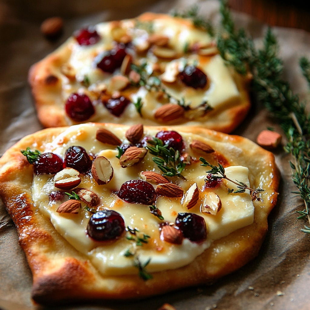 Crispy Flatbread with Brie, Cranberries & Toasted Almonds