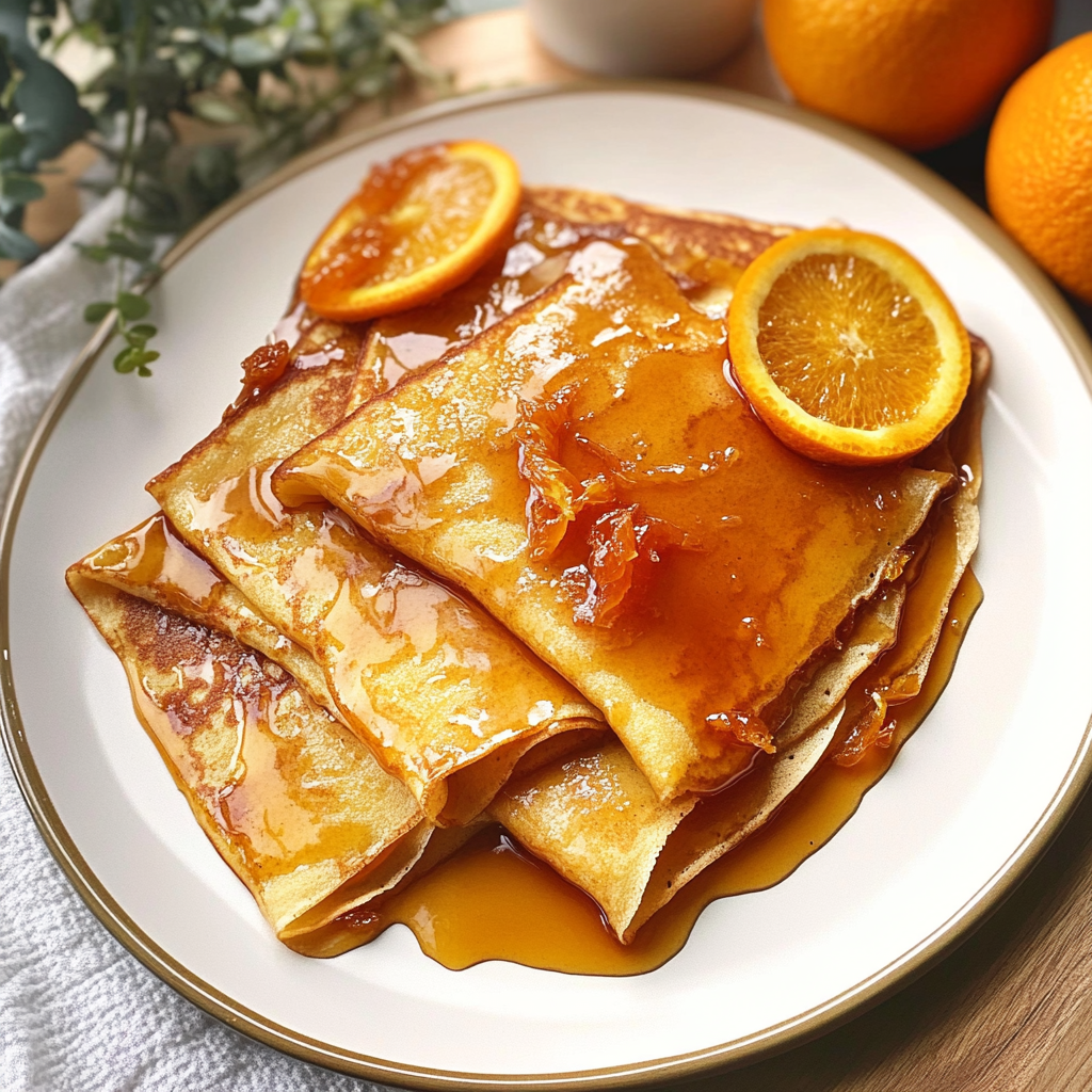 • Serve the crepes folded into quarters, with the orange sauce drizzled generously on top for a beautiful and elegant display.