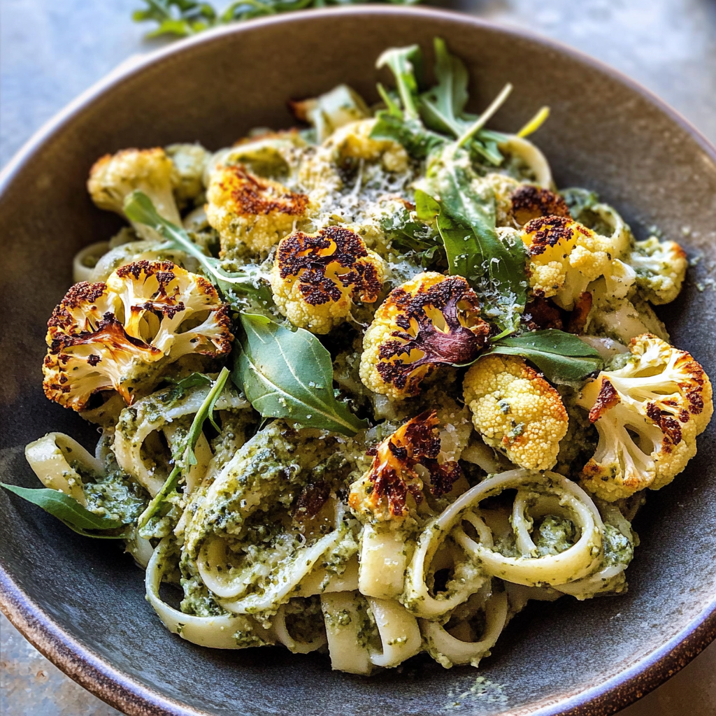 How to Serve Crispy Roasted Cauliflower with Creamy Pesto Pasta