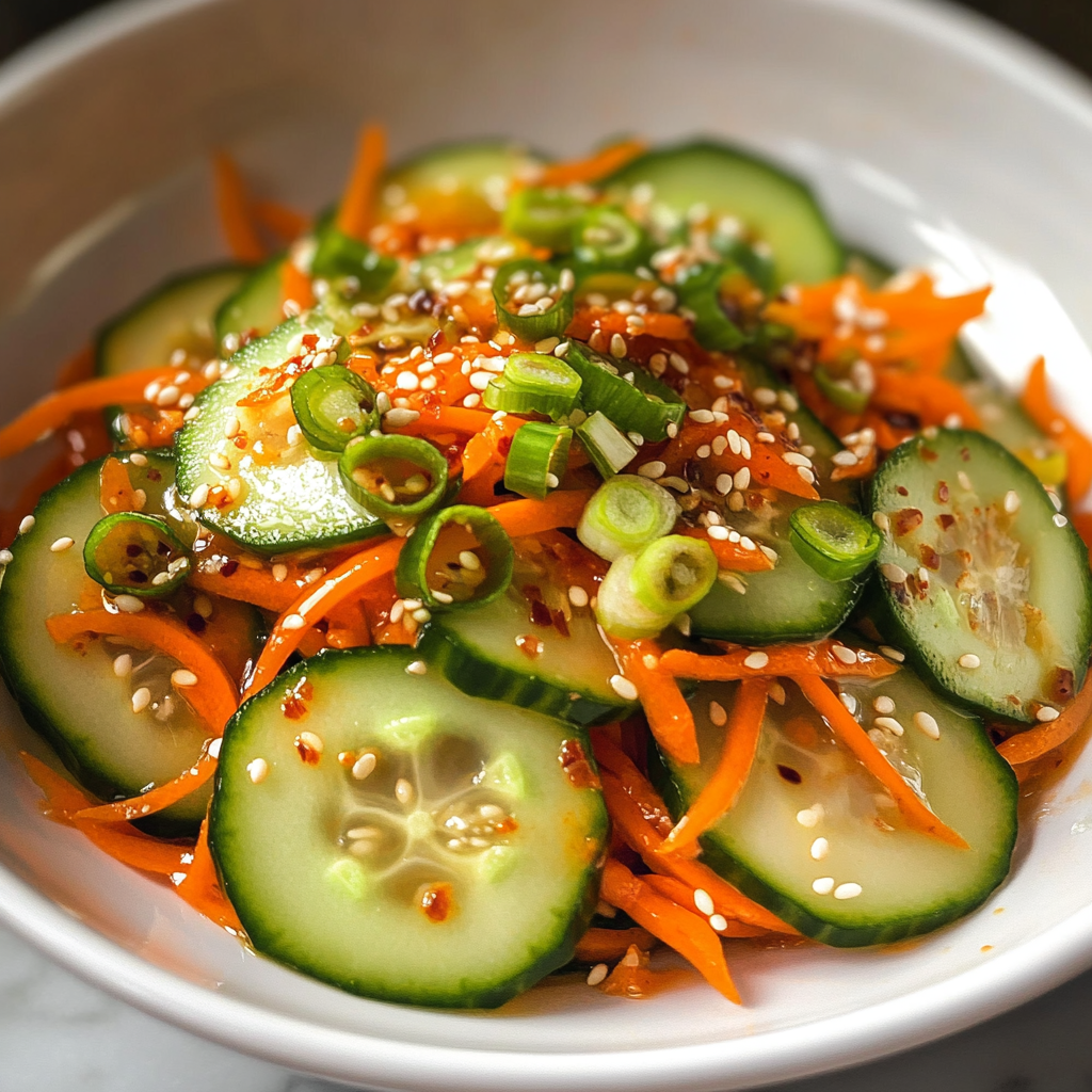 Enjoy a refreshing Cucumber and carrot salad that’s easy to make! Perfect as a side dish or light meal. Try it now!