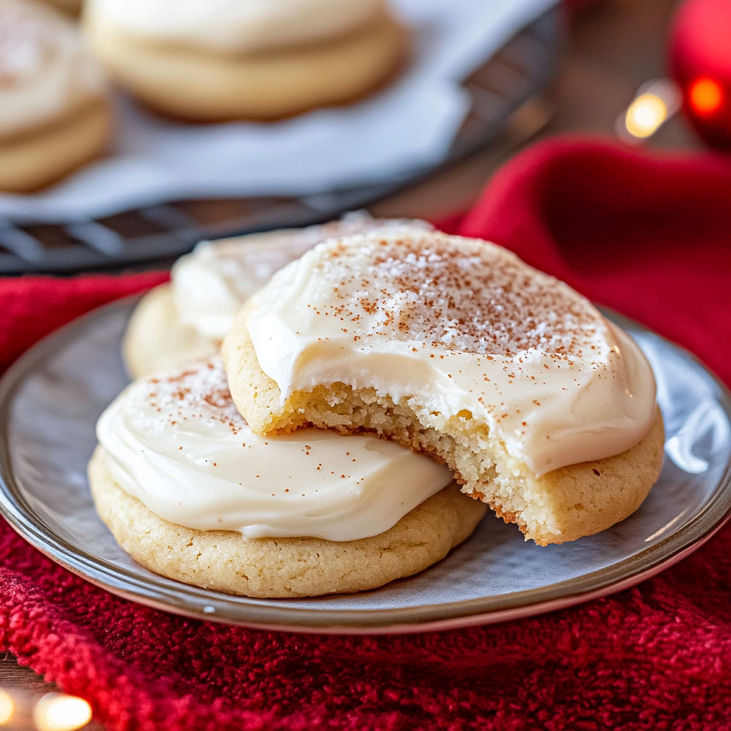 Eggnog cookies with eggnog frosting are soft and flavorful treats inspired by the classic holiday drink, featuring nutmeg and vanilla flavors.