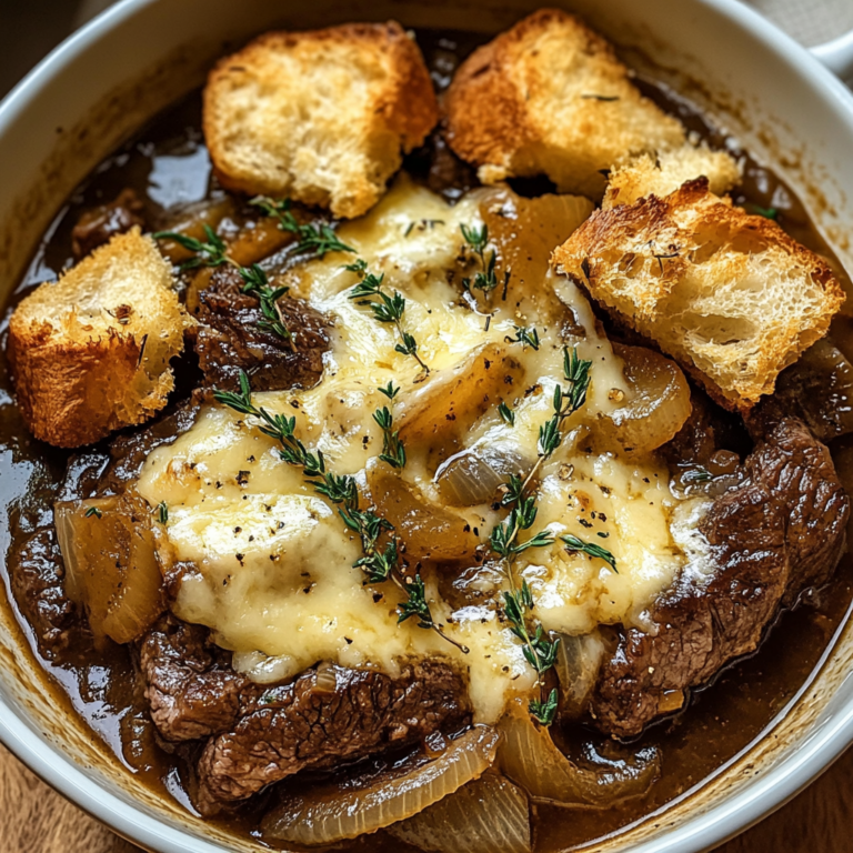 Indulge in French Onion Beef Stew with Cheesy Bread Topping—rich, hearty, and perfect for cozy dinners. This delightful dish brings together the savory flavors of slow-cooked beef and caramelized onions, topped with gooey cheese on toasted bread. It’s ideal for family gatherings or a comforting weeknight meal, making it a versatile choice for any occasion.
