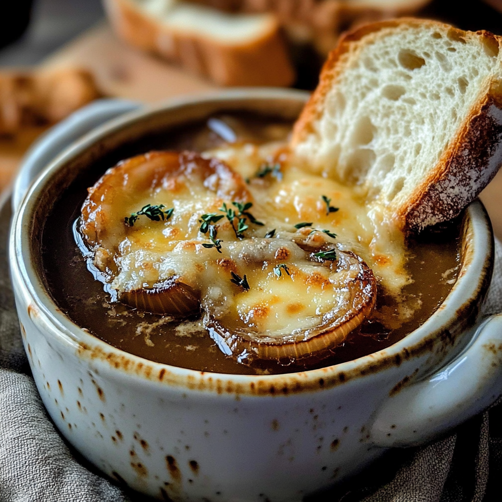 Indulge in the comforting warmth of our classic French Onion Soup, a delightful dish that brings together the rich sweetness of caramelized onions and the savory depth of high-quality beef broth. This recipe is perfect for chilly evenings or as an impressive starter for dinner gatherings. Topped with toasted baguette slices and melted Gruyere cheese, each bowl offers a delicious experience that warms the soul. With simple ingredients and easy-to-follow steps, you can create this gourmet soup at home, impressing family and friends with its unforgettable flavor and aroma.