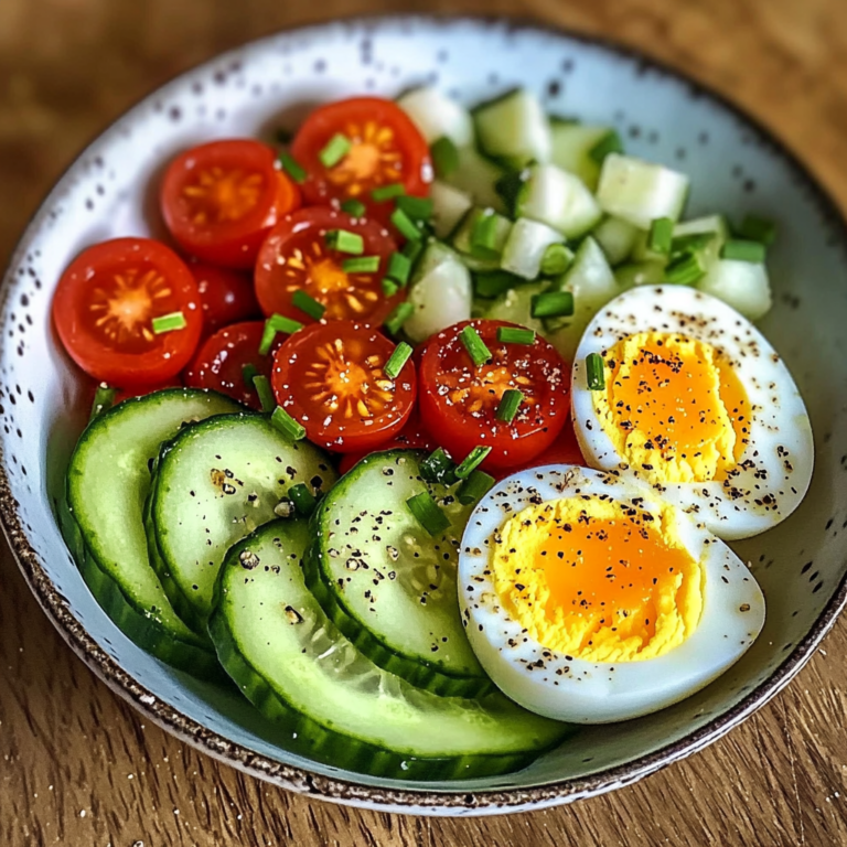 Discover the vibrant flavors of the Garden Egg Bowl with Cucumber & Cherry Tomatoes, a delightful dish that beautifully combines fresh ingredients into a nutritious meal. Perfect for those busy days, this bowl features crisp cucumber slices, juicy cherry tomatoes, and protein-rich boiled eggs, all artfully arranged to create an appealing presentation. It’s not just quick to prepare—taking only 20 minutes—but also offers versatility as it can be enjoyed as a light lunch or served alongside your favorite dishes at gatherings. Add a drizzle of olive oil or a splash of lemon juice for an extra burst of flavor and make this customizable salad your go-to recipe for healthy eating.