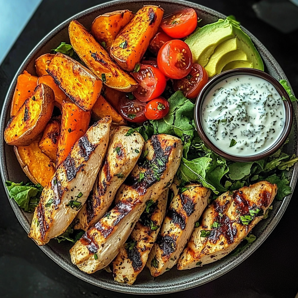 Indulge in a wholesome and vibrant meal with our Grilled Chicken Power Plate with Sweet Potatoes & Avocado Salad. This dish beautifully combines juicy grilled chicken breast, crispy roasted sweet potatoes, and a fresh avocado salad bursting with flavor. Perfect for lunch or dinner, it offers a balanced blend of protein, healthy fats, and carbohydrates, making it an ideal choice for health-conscious individuals and busy families alike. With quick preparation and versatile ingredient options, this power plate is not only satisfying but also easy to customize to meet your taste preferences. Elevate your dining experience with this nutrient-rich recipe that’s sure to please everyone at the table.