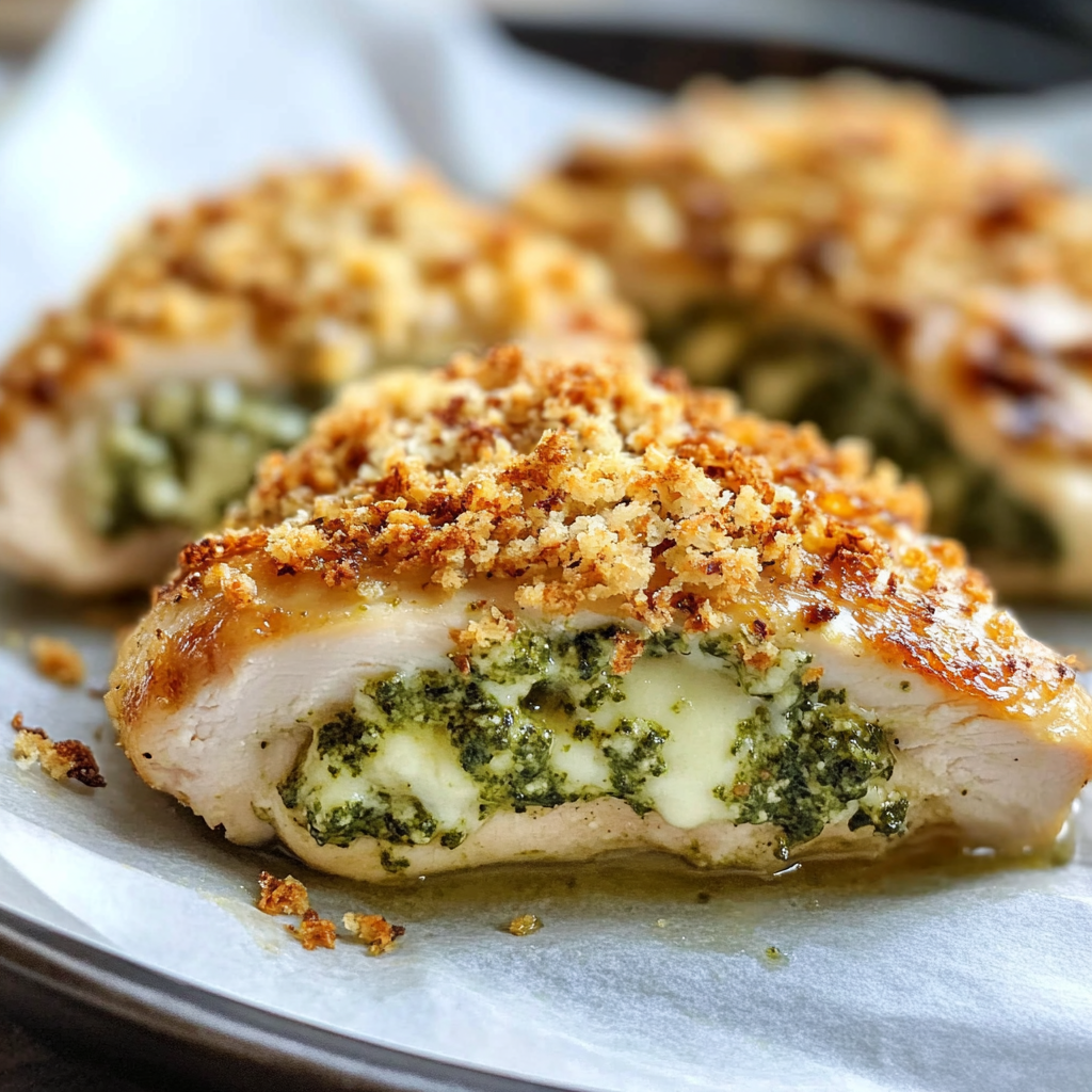 - Overstuffing the chicken: Packing too much filling can cause the chicken to burst. Use just enough pesto mixture to fill each breast without overflowing.