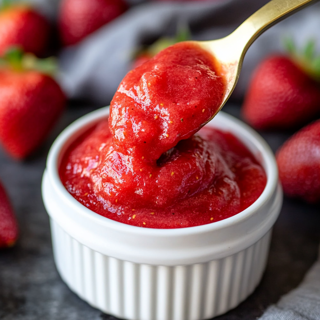 Strawberry puree is a versatile topping that can elevate many dishes. Whether you’re adding it to breakfast items or desserts, this homemade sauce adds a fresh burst of flavor.