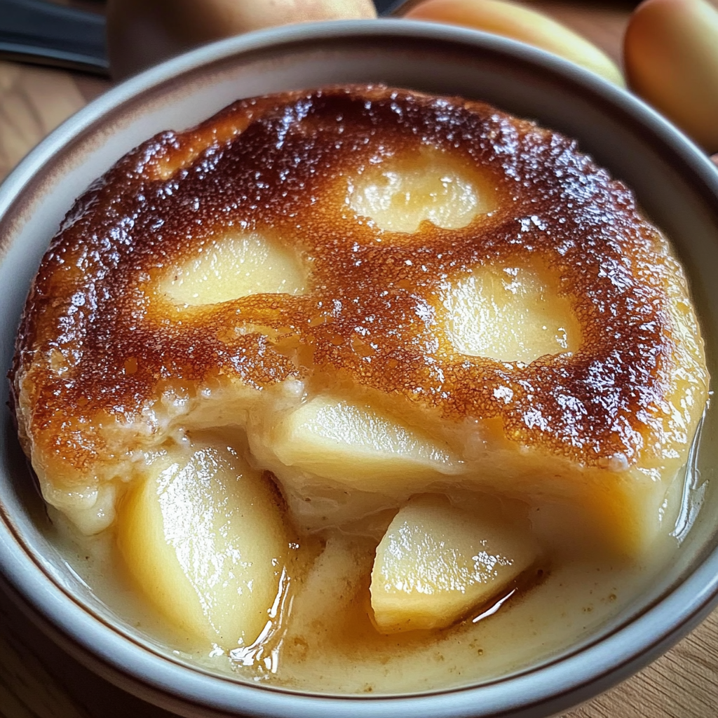 Malvern Pudding is a delightful dessert that combines tender apples with a rich custard base, topped with caramelized sugar.