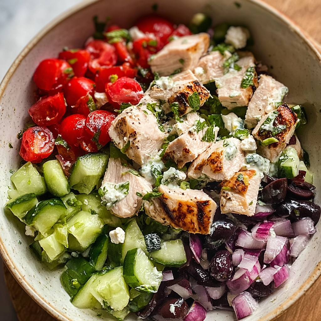 Mediterranean Chicken Salad is a vibrant and refreshing dish that brings together the best of Mediterranean flavors. This salad features tender chicken, tangy feta cheese, and a mix of fresh vegetables, all tossed in a creamy Greek yogurt dressing. Perfect for lunch or as a light dinner, it’s not only delicious but also quick to prepare, making it ideal for busy days or entertaining guests.
