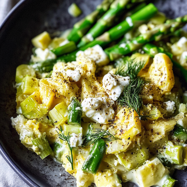 This elegant yet simple brunch scramble is perfect for a special morning. With tender leeks, fresh asparagus, creamy eggs, and tangy goat cheese, it’s a light and flavorful dish that feels both fresh and indulgent.