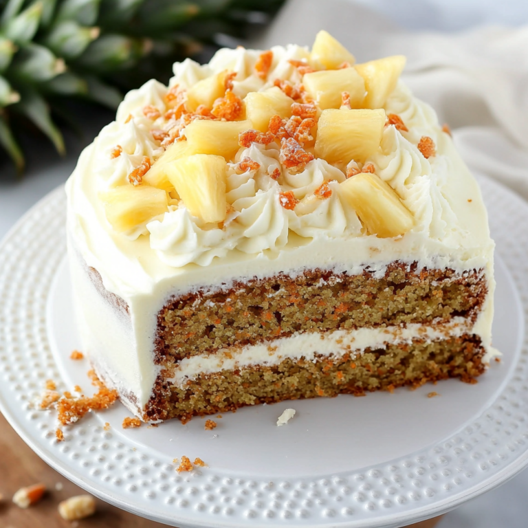 Indulge in the delightful flavors of Pineapple Carrot Cake, a moist and flavorful dessert that brings together the sweetness of pineapple and the earthiness of carrots. This easy-to-make cake is perfect for any occasion, from birthday parties to casual family gatherings. Topped with a luscious cream cheese frosting and sprinkled with crunchy walnuts, it’s sure to impress both friends and family alike. Enjoy a slice of this tropical twist on a classic carrot cake—each bite is bursting with flavor!