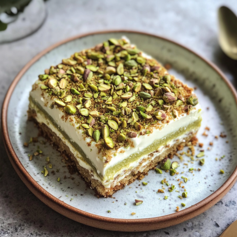 Pistachio Tiramisu is a luscious and innovative take on the classic Italian dessert that will tantalize your taste buds. This no-bake treat combines creamy layers of mascarpone and rich pistachio flavors with coffee-soaked sponge fingers, creating a delightful medley of textures and tastes. Perfect for any occasion, from casual gatherings to elegant dinner parties, this dessert is not only visually stunning but also incredibly simple to prepare. Let it chill overnight for optimal flavor melding, making it an effortless yet impressive addition to your dessert table. Whether you’re celebrating a special occasion or just indulging in a sweet craving, this Pistachio Tiramisu will leave everyone asking for seconds.