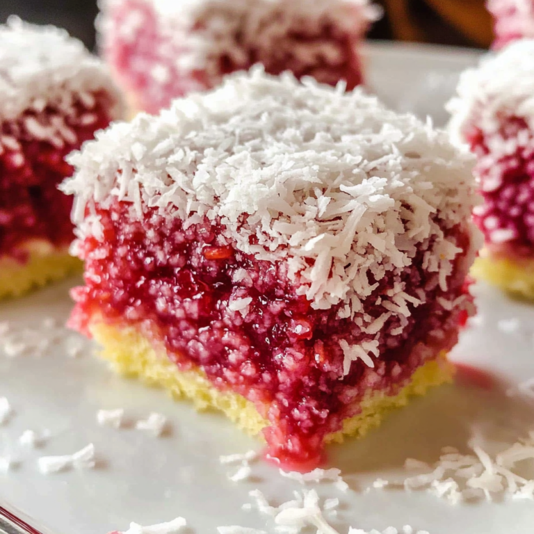 Raspberry Lamingtons are a delightful twist on the classic Australian treat, offering a soft sponge cake that’s generously coated in a luscious raspberry glaze and rolled in desiccated coconut. These bite-sized squares are not only visually stunning but also bursting with flavor, making them an ideal addition to any gathering, afternoon tea, or simply as a sweet indulgence at home. With their vibrant color and unique texture, Raspberry Lamingtons are sure to impress your family and friends. Plus, this simple recipe is perfect for bakers of all skill levels!