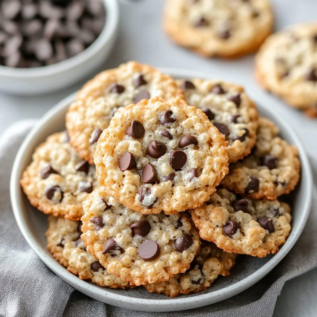 Rice Krispie Cookies with Chocolate Chips are delightful treats that combine crispy rice cereal and gooey chocolate chips into a chewy cookie form.