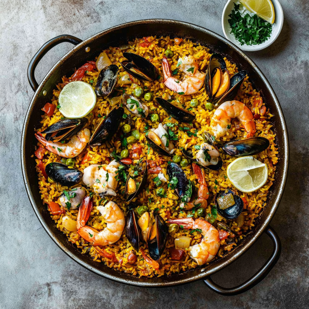 You can make Spanish Paella, a vibrant and flavorful dish that embodies the spirit of Spain right in your kitchen. This dish is perfect for family gatherings, dinner parties, or any occasion where you want to impress your guests with a taste of authentic Spanish cuisine. The combination of saffron-infused rice, tender chicken, and fresh seafood creates a visually stunning and mouthwatering meal that’s sure to please everyone at the table.