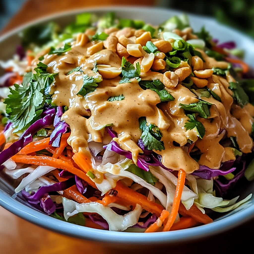 Enjoy a refreshing and flavorful Spring Roll Salad topped with a creamy peanut dressing for a quick and healthy weeknight meal. Packed with crunchy vegetables and an irresistible sauce, this salad is a delightful way to incorporate more veggies into your diet.