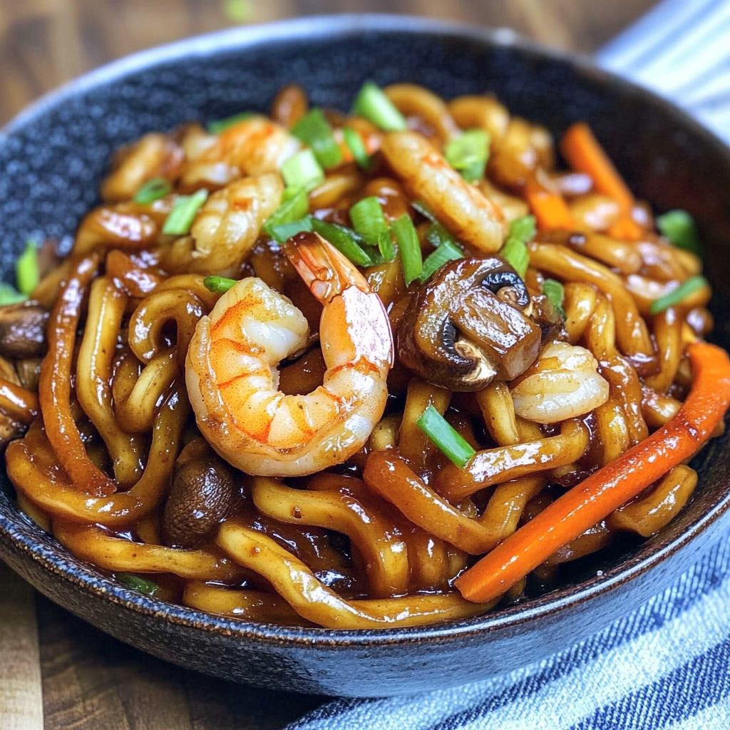 Yaki Udon with Shrimp is a delightful stir-fry dish that brings together the soft texture of udon noodles and the succulent flavor of shrimp, making it ideal for weeknight dinners or special occasions. This quick and easy recipe showcases a colorful medley of vegetables and rich sauces that will tantalize your taste buds. Whether you’re feeding a family or entertaining guests, this dish is sure to impress with its vibrant presentation and satisfying taste.